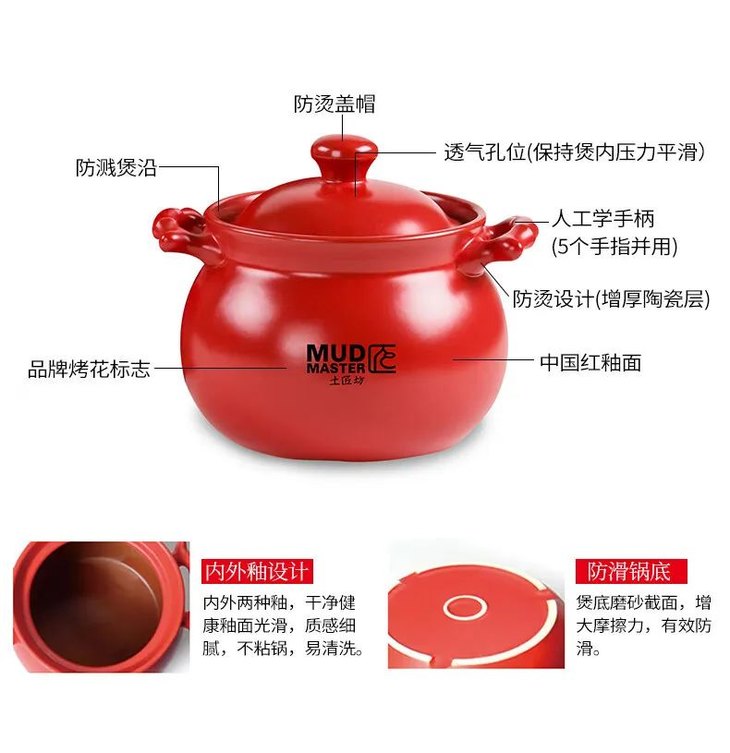 土匠坊中国红·福煲,精选原矿高岭土和火山石,不仅耐火性好,还带来了健康环保的烹饪体验。
