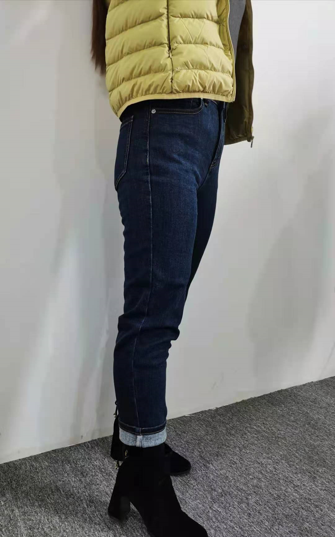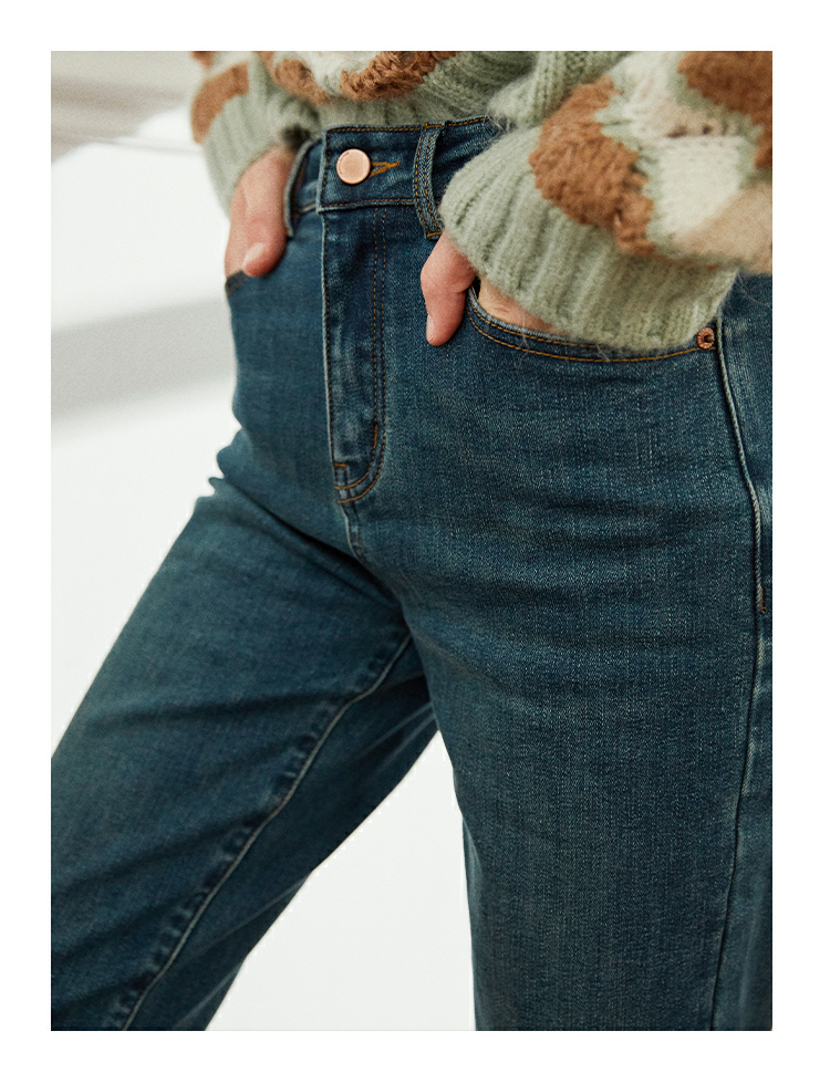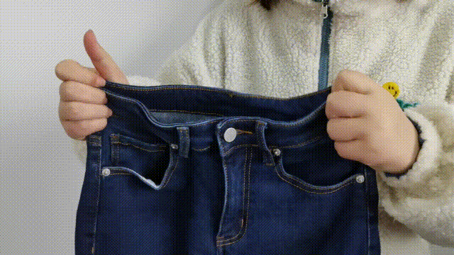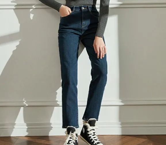 所以穿上这款德绒牛仔裤就相当于普通牛仔裤+一条秋裤,和市面上的加绒裤保暖度一样,但没有那么厚的束缚性,上身贴合又不勒,穿脱自如。