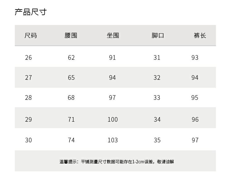 我身高158厘米,体重98斤,上身的这条是26码,裤长和腰围都是刚刚好的,所以按照尺码表还是蛮准的。