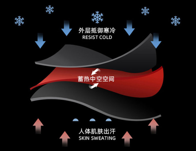 这种材质可以吸收皮肤呼吸排出体外的水蒸气,然后吸湿发热,转化为热能,让身体感到温暖。