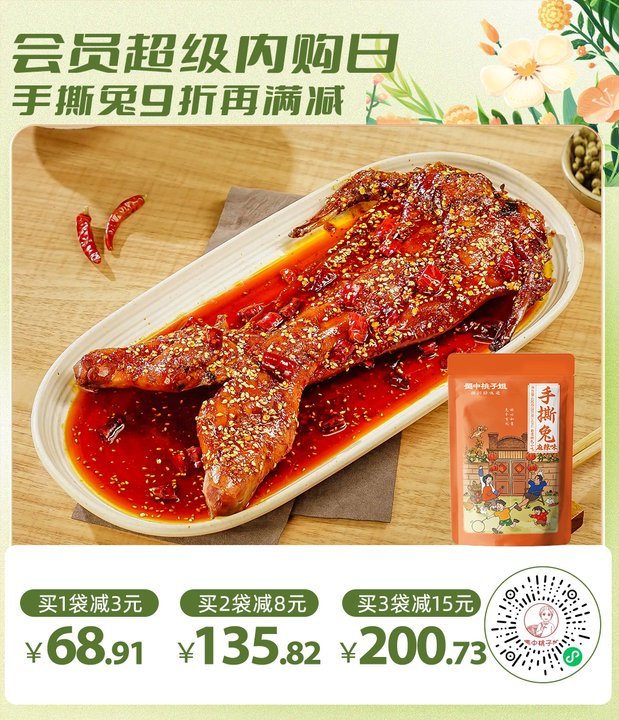 活动都是立减的,直接拍就是最优惠的价格~今年手撕兔还从原来的600g升级为650g,真的特别划算~