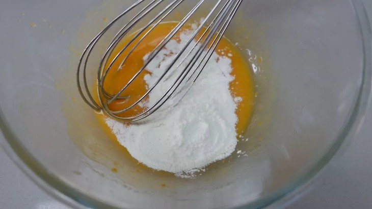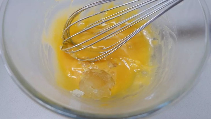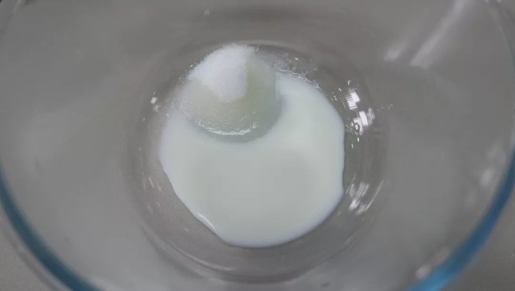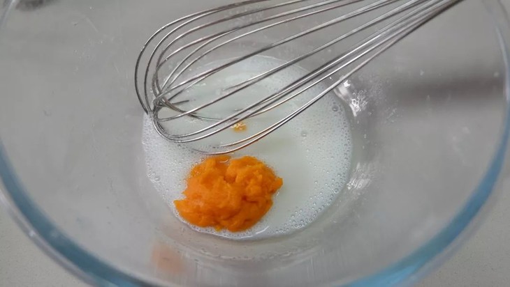 将牛奶与白糖搅拌融化,加入咸蛋黄泥,搅拌均匀