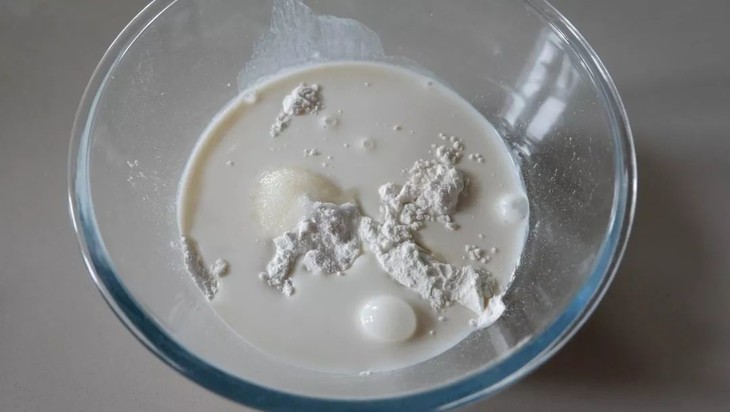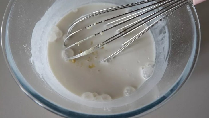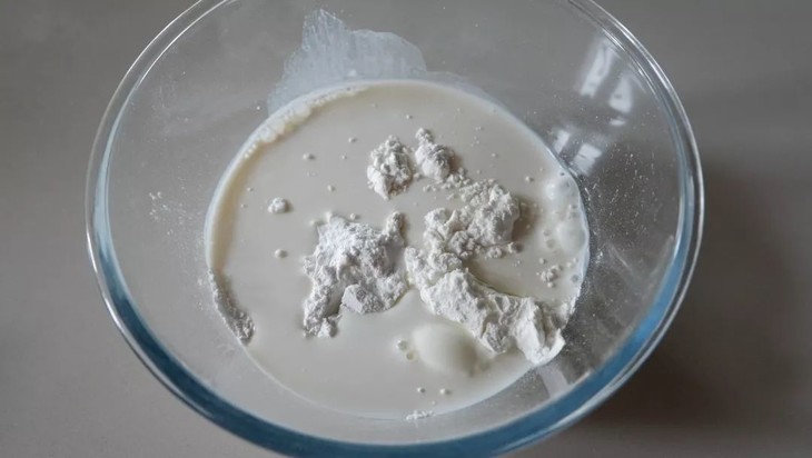 冰皮制作过程:将粘米粉、糯米粉、玉米淀粉、白砂糖、牛奶混合一起搅拌均匀