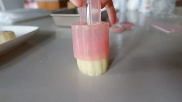 采用50g规格模具进行压膜,小心月饼出膜
