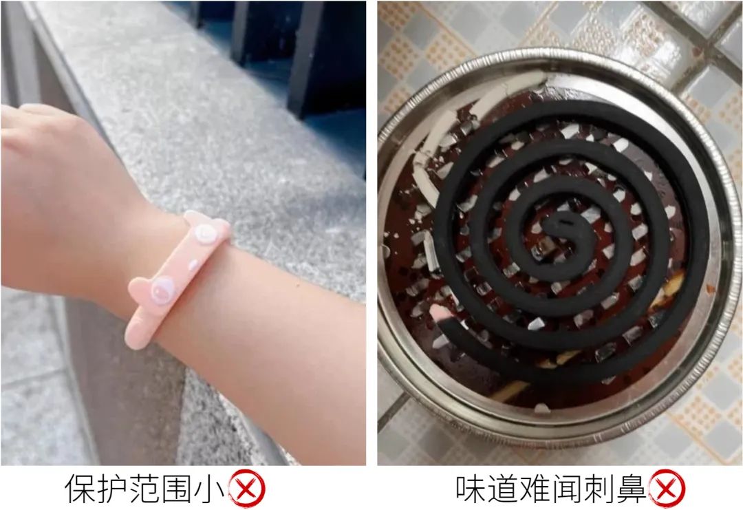 比如驱蚊手环、驱蚊贴,保护范围有限,冷不丁就被蚊子咬了一口;蚊香气味难闻,室内不通风还会导致头疼头晕。