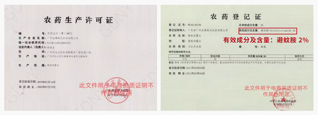 在我国,驱蚊产品归农业部监管,正规厂家生产的驱蚊产品都必须要有农药批准文号,没有农药证的不能写驱蚊作用。