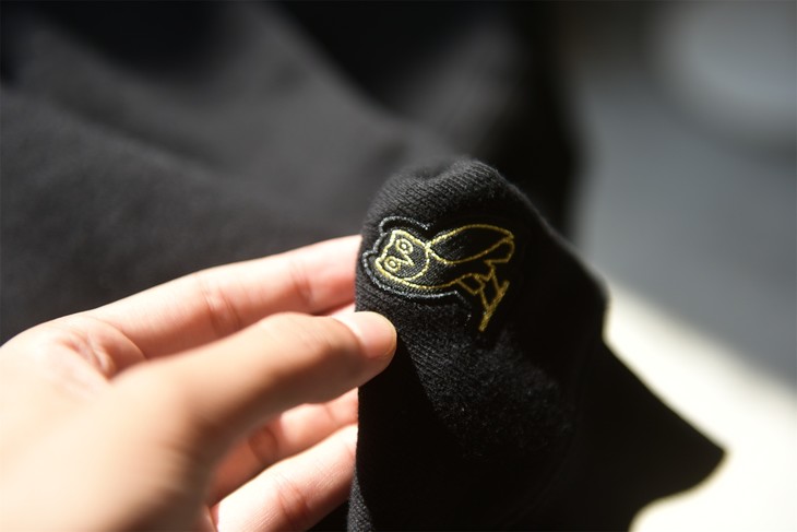 胸口的毛巾面料刺绣贴标做工非常的精致