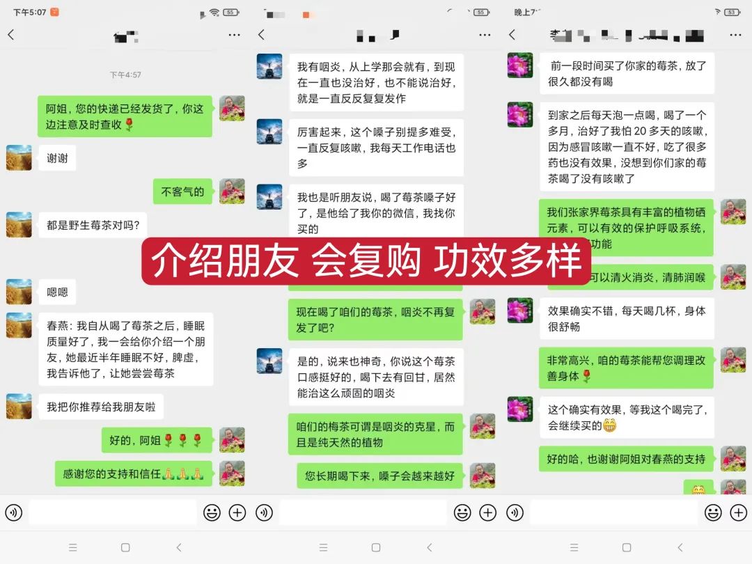 2.春燕她掌控了所有环节,从采摘鲜叶,到制茶以及成品入库她都亲自参与了,成本又降低了。3.春燕想让你加她微信,是直接卖给你,直接给你发货,省去了中间环节。最重要的是...春燕说了 :不图暴利,只求未来的健康事业!现在你只需要添加下方春燕家莓茶微信,就有机会免费领取到莓茶大礼包同时还能享受新客优惠(仅限前50名茶友)不管你是心脑血管疾病,还是结节、糖高、脂高、压高,是更年期、失眠,还是皮肤衰老、胸闷气短、头疼腹胀、体虚多汗或者常年的慢性病等,只要你不舒服你就来喝李春燕家莓茶!