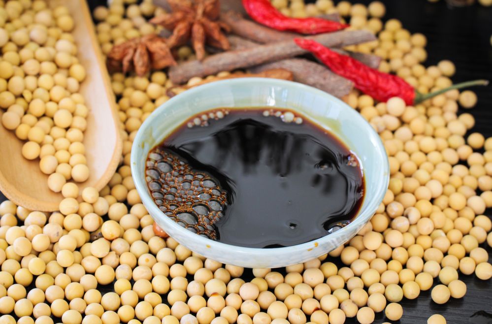 酱油主要由大豆,淀粉、小麦、食盐经过制油、发酵等程序酿制而成,色泽红褐色,有独特酱香,滋味鲜美,有助于促进食欲。