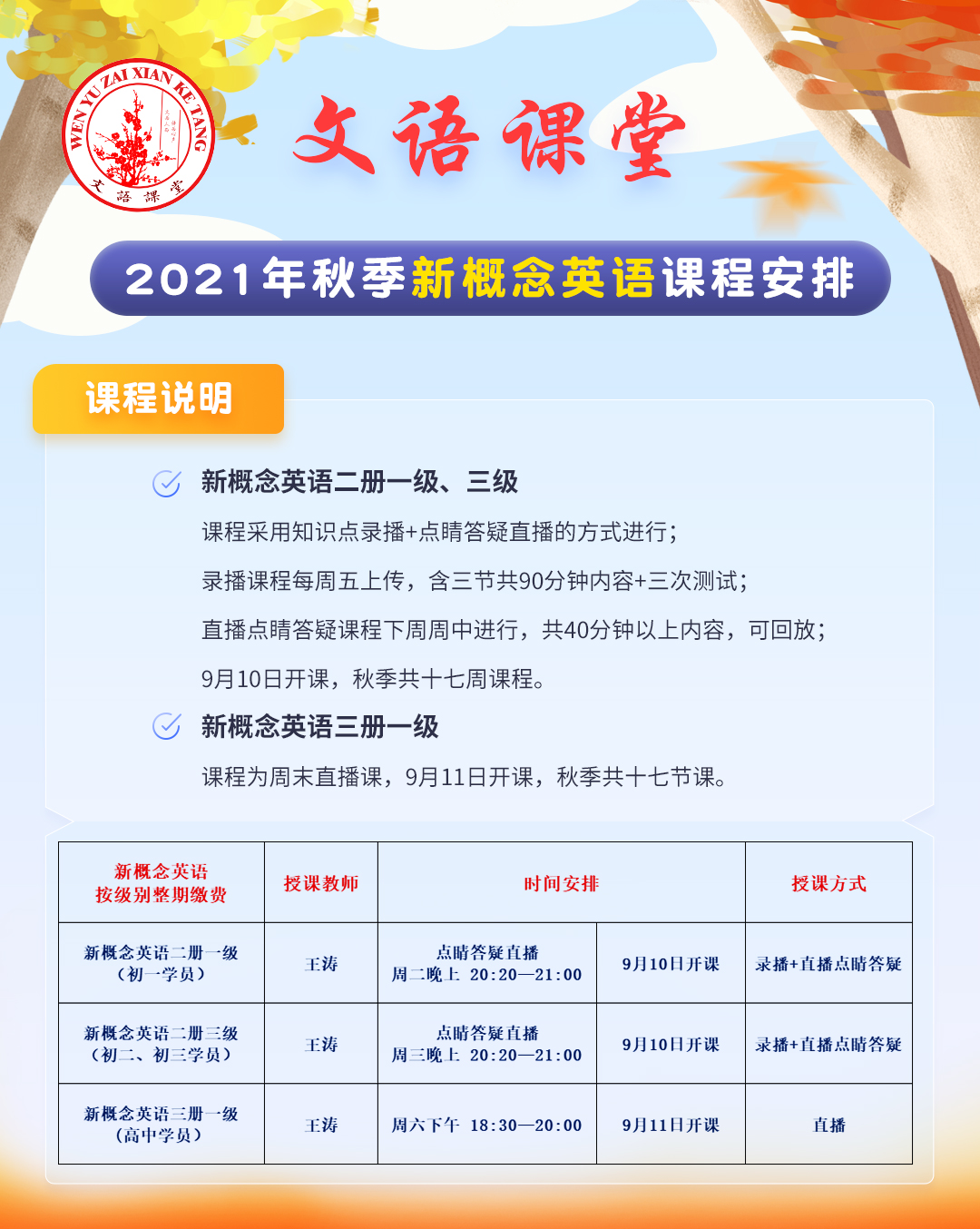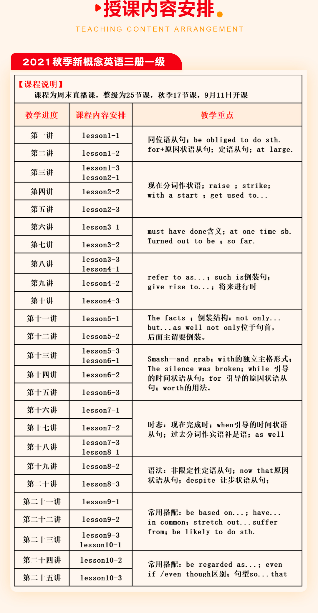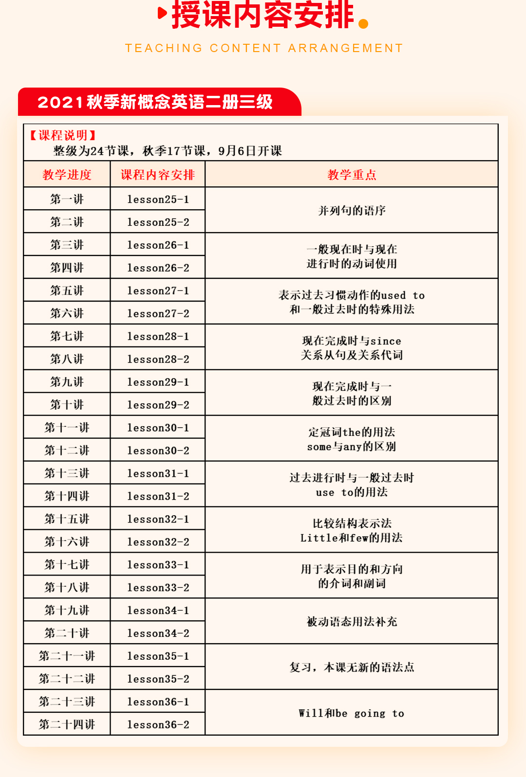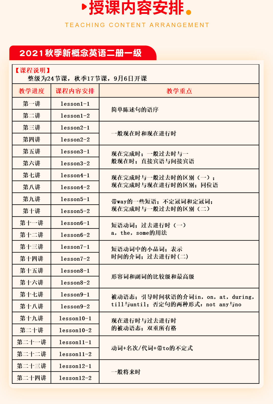 2021秋季新概念英语课表/大纲