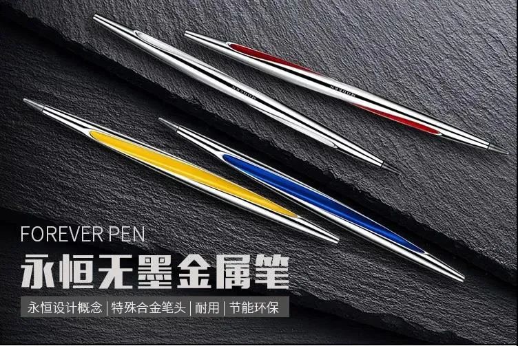 永恒笔主要是通过在纸上摩擦,将金属分子分解留在纸张表面,类似于铅笔,但是作为核心的笔头却要比铅笔硬,书写效果类似于HB的字迹,笔迹也不容易进行修改~