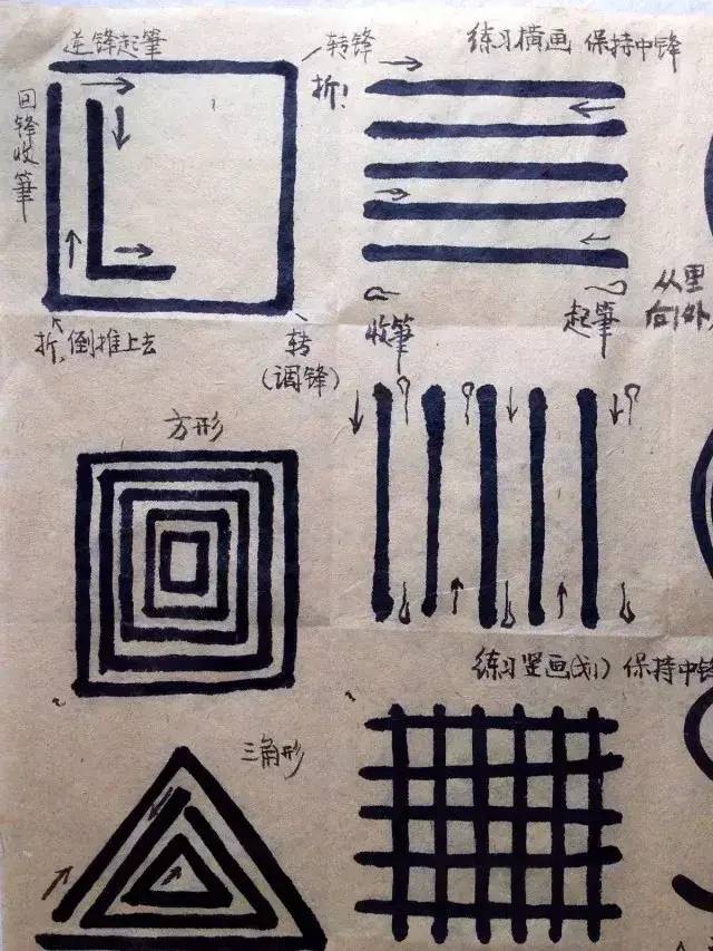 用几何图形训练,可以不管字形,专注笔法,怎么逆锋起筆回锋收笔,运笔保持中锋,反复练习折笔、转笔。