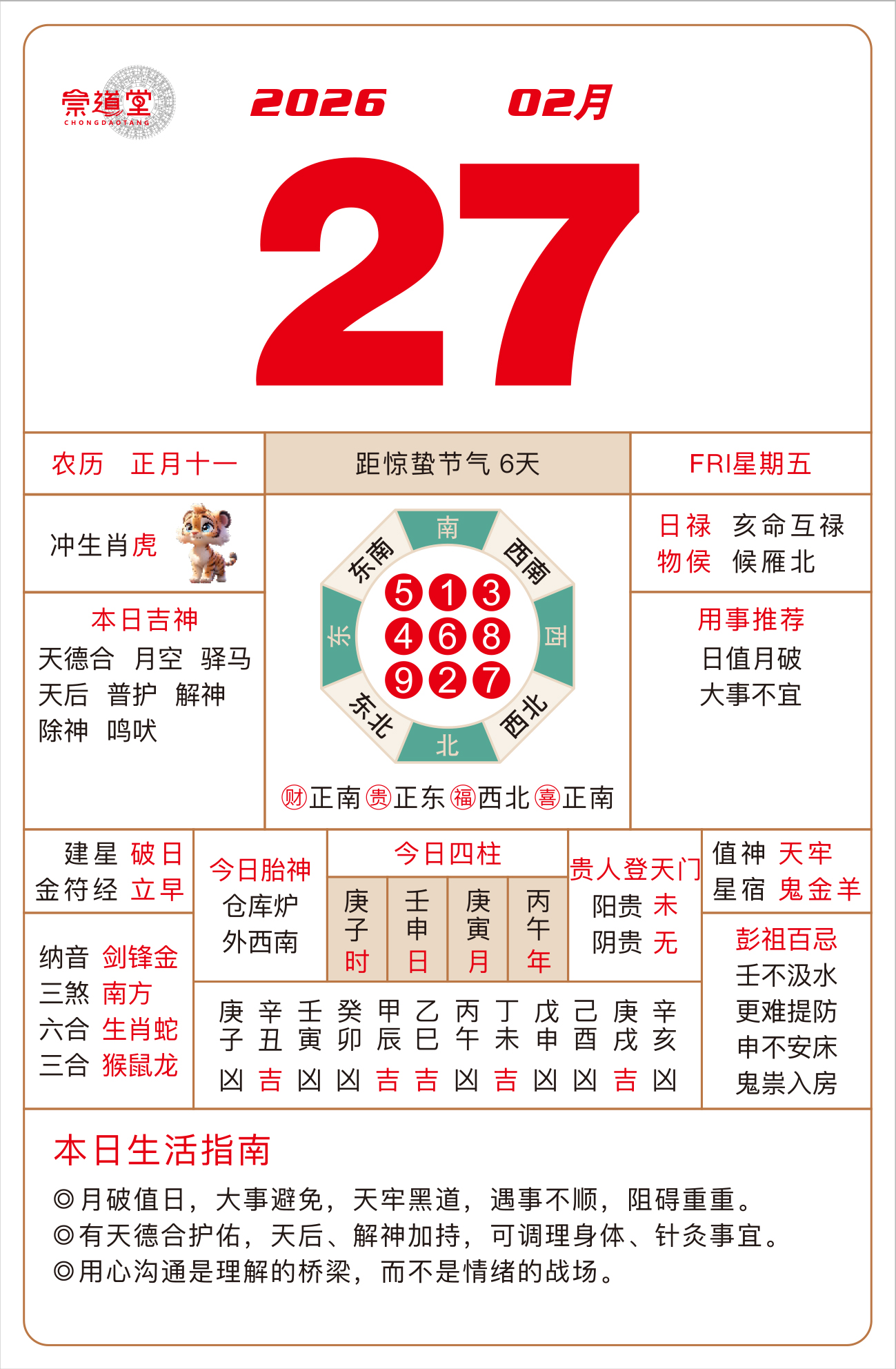 2026年3月11日 农历正月廿三 甲申日 冲虎