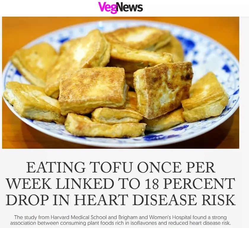 美国哈佛医学院附属布莱根妇女医院的研究人员发现,与几乎不吃豆腐的人相比,平均每周至少吃1次豆腐(150克以上,约半盒嫩豆腐)的人,罹患心脏病的风险降低18%,且在停经前或未服用雌激素的更年期女性身上更明显。[1]