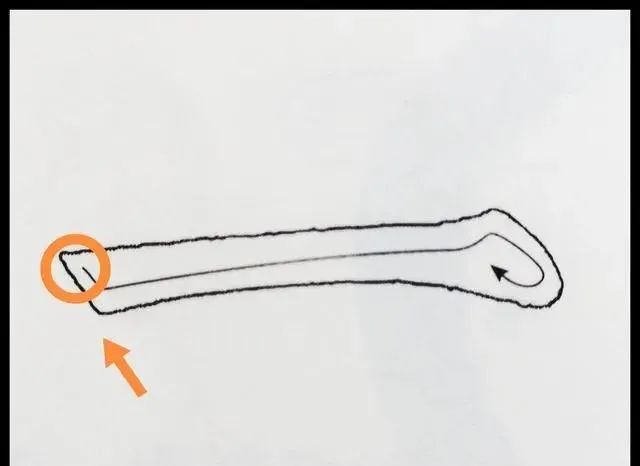 所以,切笔入纸的部分就形成了一个角度,能把这个角度的轮廓写好了,才不算败笔。竖画也一样,切笔入纸也是笔锋轻轻向左下落笔再折锋向右顿笔,然后再铺笔向下缓行。见下图。