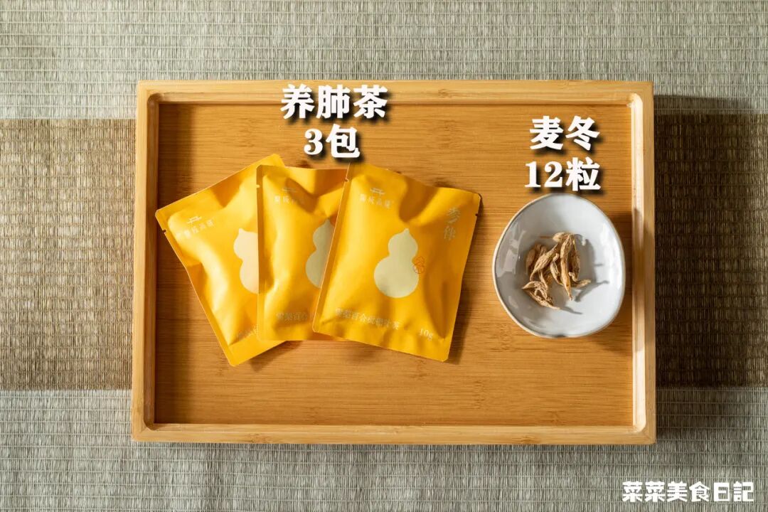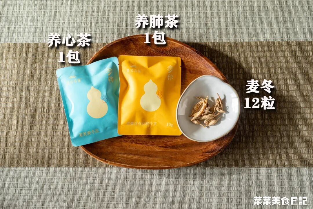 每日用量:养心茶1包+养肺茶1包+麦冬12粒