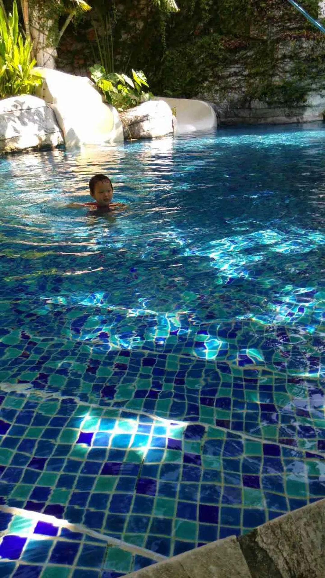 亚龙湾 我作为唯一的壮丁,自然是贴身随护,有求必应。每天,我们就在泳池戏水、玩滑梯。儿子比我胆大,他打滑梯一点没犹豫,我呢,跟头把式的心都快飞出去了,为了孩子拼了。不过很快我就适应了,太好玩了。孩子每次滑完就撅着小屁屁往外爬,抓紧一切时间再滑一次。边跑还边跟我说:妈妈,过瘾吗?妈妈,你开心吗?我不觉莞尔,这些话可都是我平时问他的啊!