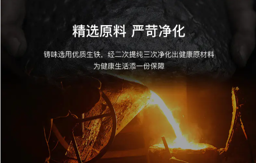 像铸味的这些生铁锅,用的都是原生铁,在1500°熔炼后,经过多次提纯和净化的步骤,让铁水更有纯度。