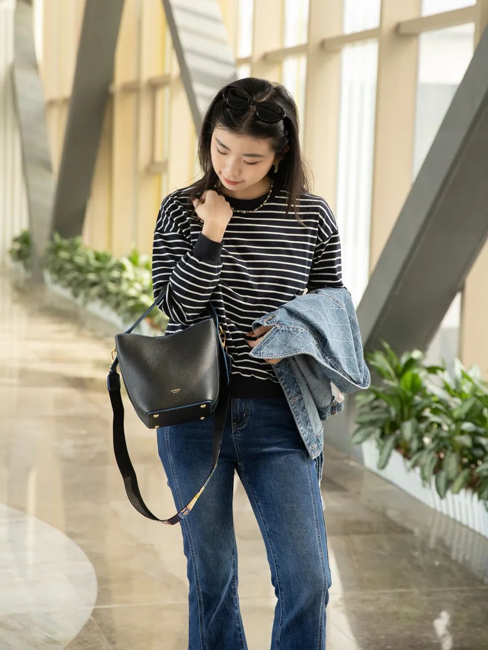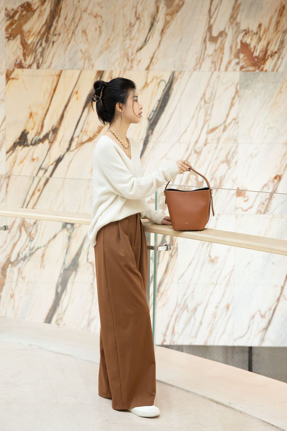 作为一只水桶包,包内两侧金扣扣上又有束口包的感觉,包型也可以根据喜好调节~