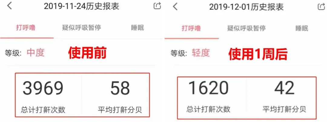 用睡眠监测的APP测了一下,连续用了1周后,他的鼾声音量、打鼾频率,简直是“跳水式”降低!