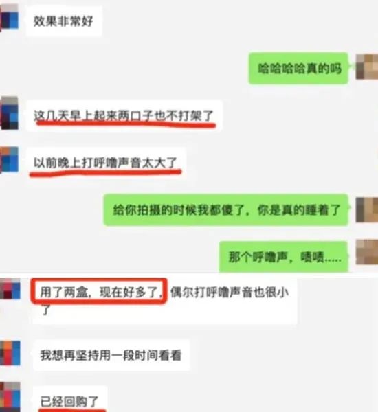 如今他已连续用了5盒,几乎和打鼾这个老伙伴说拜拜了!