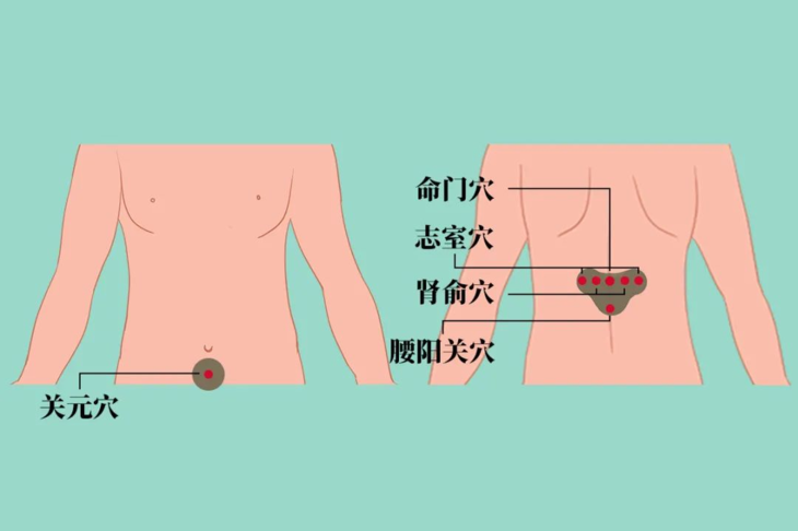 腰部是肾气对应的穴位聚集之处,如命门穴、腰阳关穴、肾俞穴等,艾灸敷贴此穴位,可补肾阳、益精血。