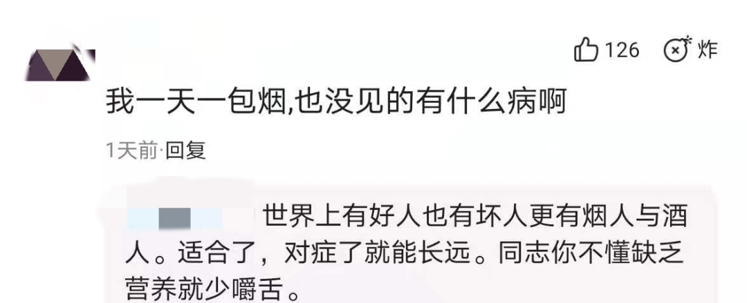 这个答案很重要,因为烟民都爱说一句话:「某某抽了一辈子烟,活到 90 多!」,甚至还有网友表示「适合就能长远」。