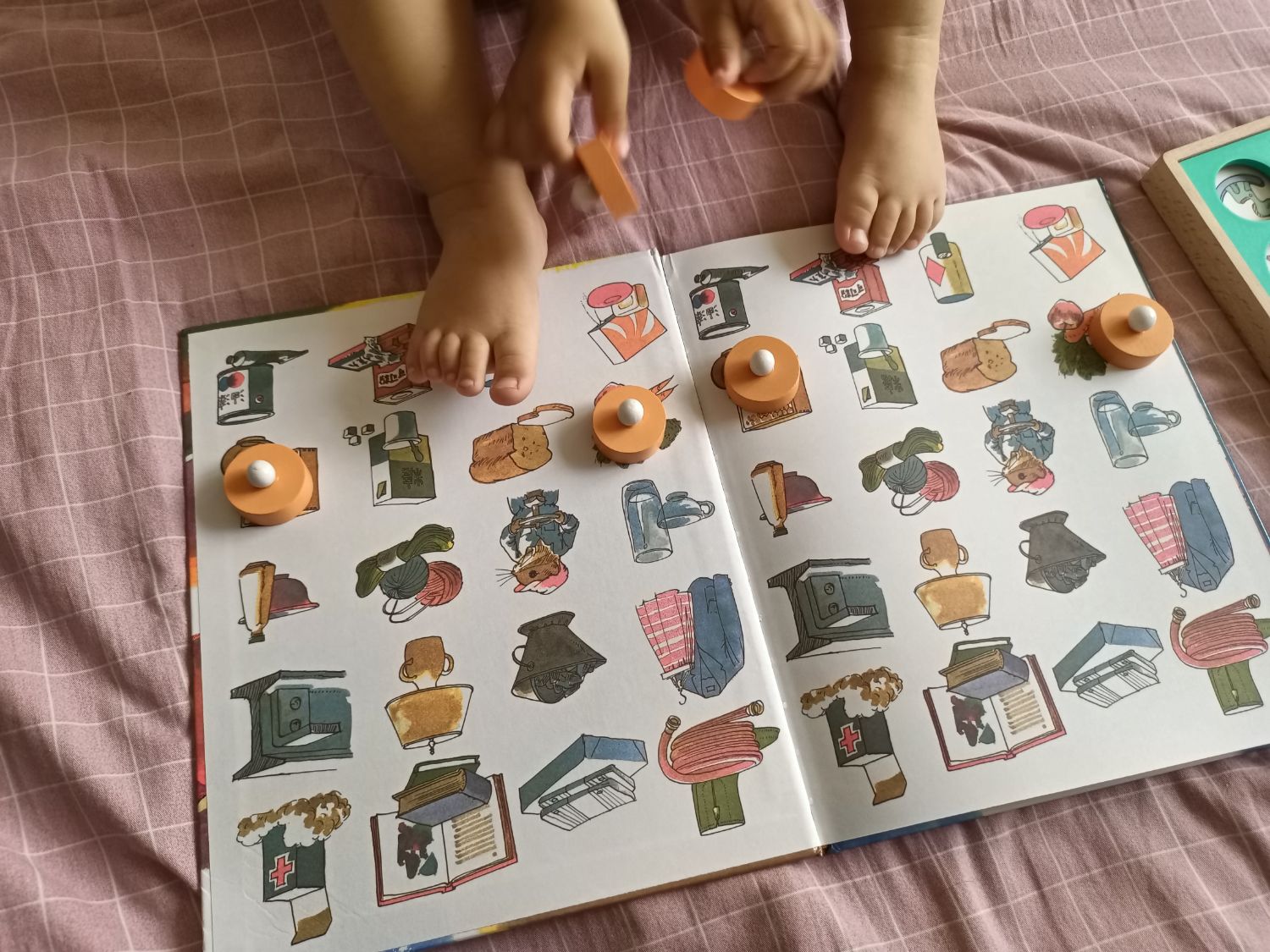 问她面包在哪里,找到之后把棋摆上,再找出另一个面包,这个过程还能数数,挺好😊