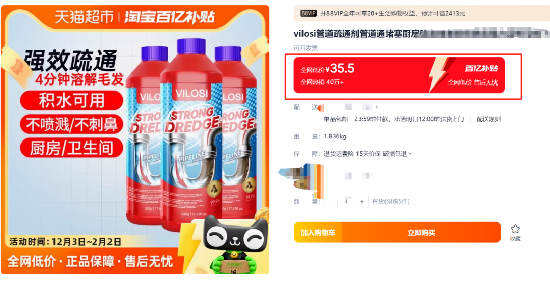 ① 管道疏通剂500ml*1瓶