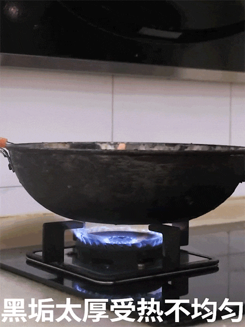 锅底黑垢太厚影响受热,火力不足劲菜熟得慢就不香了,还浪费煤气!
