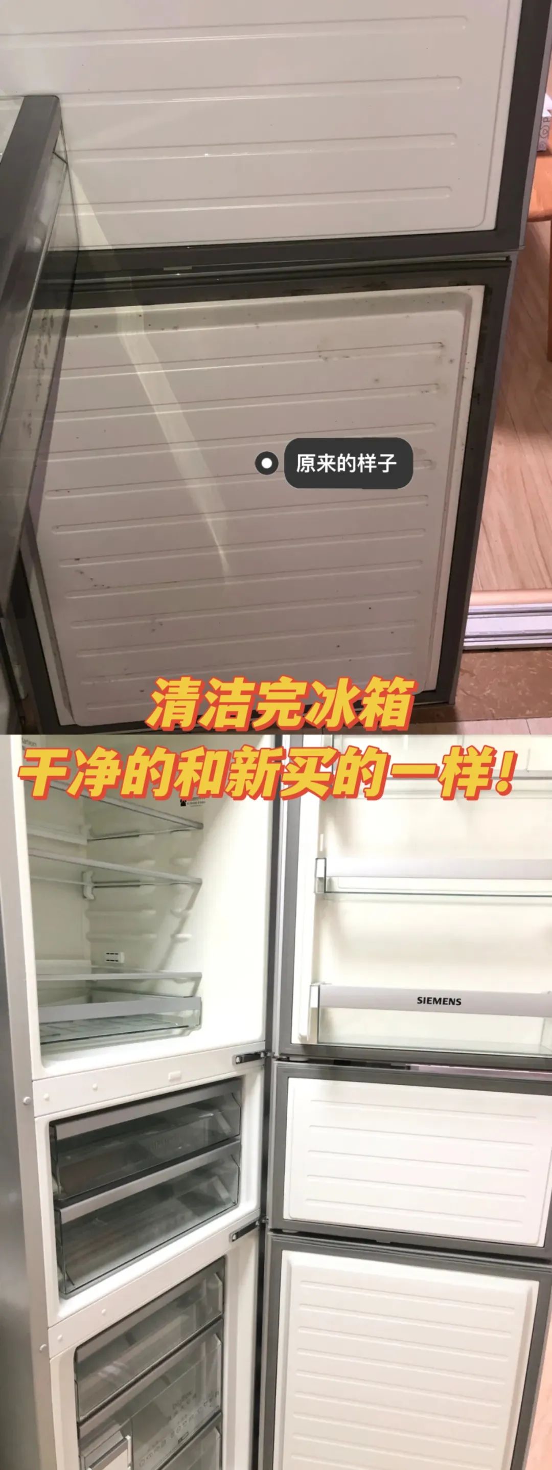 左图:冰箱未清洗前 右图:冰箱清洗后