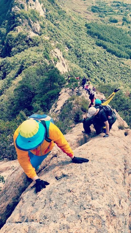 从安全角度考虑,在行进中,尤其是爬坡时,队员之间要保持适当的距离,切勿太近,给前面队友一点空间,也给风险一个化解的机会。