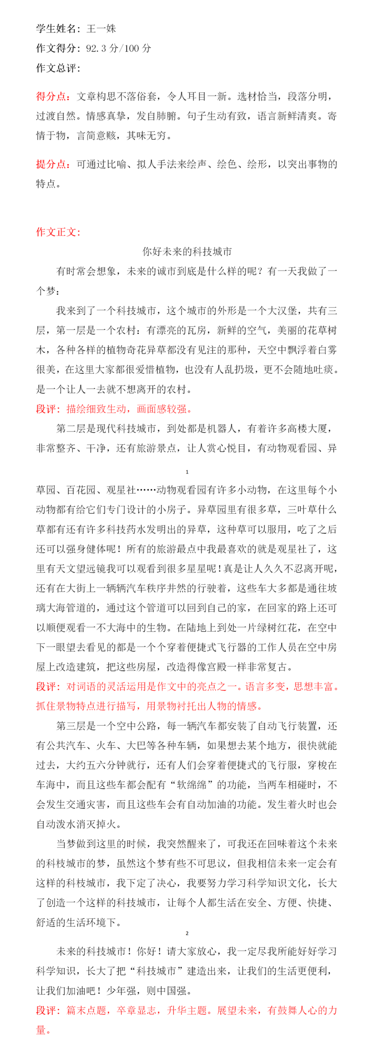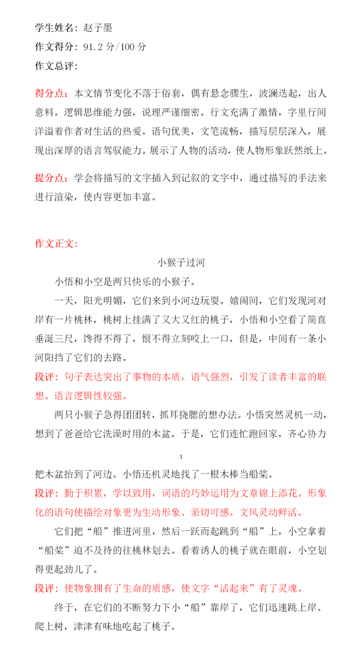 赵子墨同学是个很有灵气的小女孩,她有着较好的语文素养,丰富且大胆的想象,在平时的语文学习中就表现出了优秀的潜质。