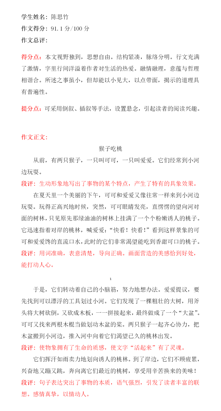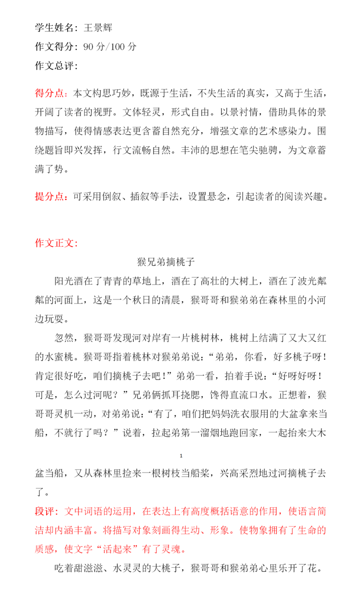 此次的看图写话选取角度新颖,一些精妙词语的使用,无形中为文章增添了不少情趣;再加上精彩曲折的情节,仿佛将读者带进了猴子乐园,令人眉开眼笑。