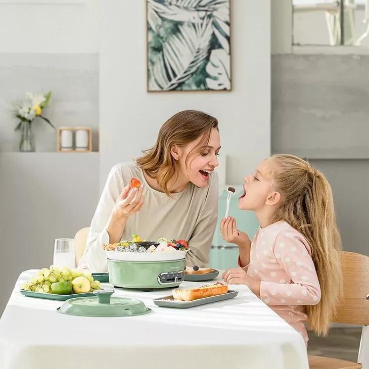 在餐桌享受美味不用担心弄得满屋油烟满桌油迹。轻油少烟易清洗一冲即净,快捷清洗无烦恼。