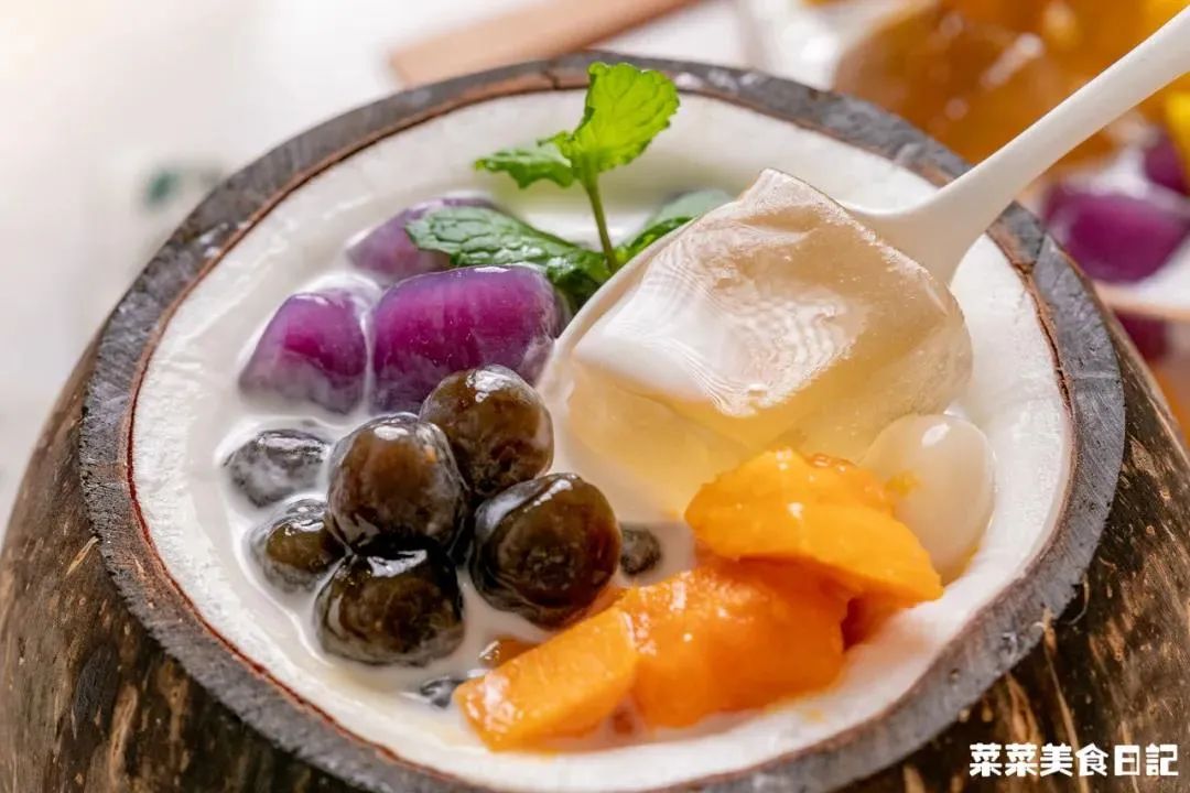 搭配着椰奶露、凉茶冻一起吃,清热解燥,这香滑甜爽的口感,我一口气能干掉一大杯!