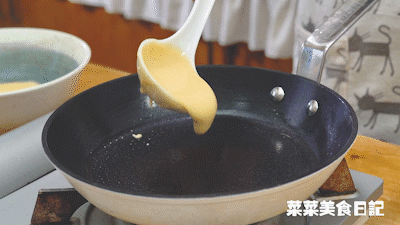 接着烧热锅,刷一丢丢油,放入面糊,小火煎2分钟,翻面再煎1分30秒,搞定!