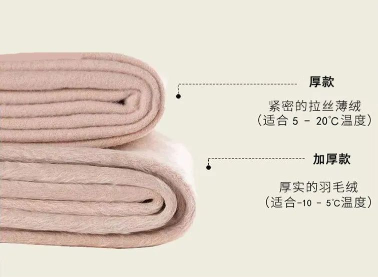 厚绒款:厚度 240g |5 ~ 15 度 加厚绒款:厚度 300g|-10 - 5 度