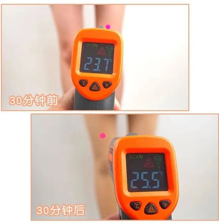 在18度的空调房,体感温度是23.7度。 一穿上滤镜袜,体感温度立即升高到25.5度。