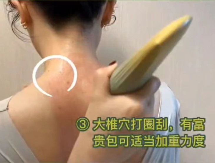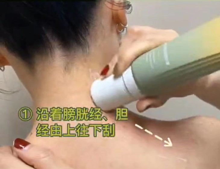 哪里不舒服刮哪里,由上往下、由内而外,顺着经络刮