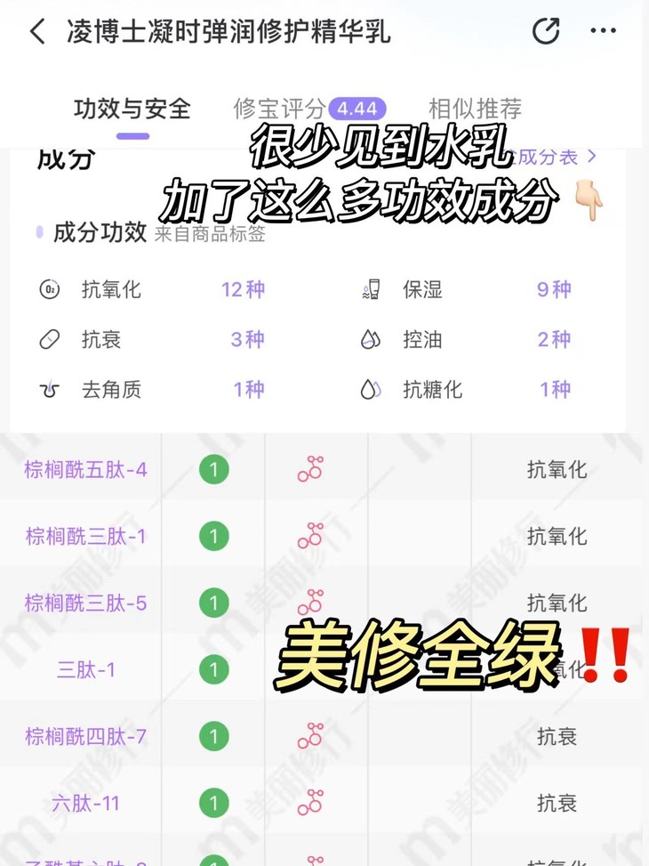 说实话,很多水乳就连基础补水工作都做得不行,更没提高阶抗老好嘛?