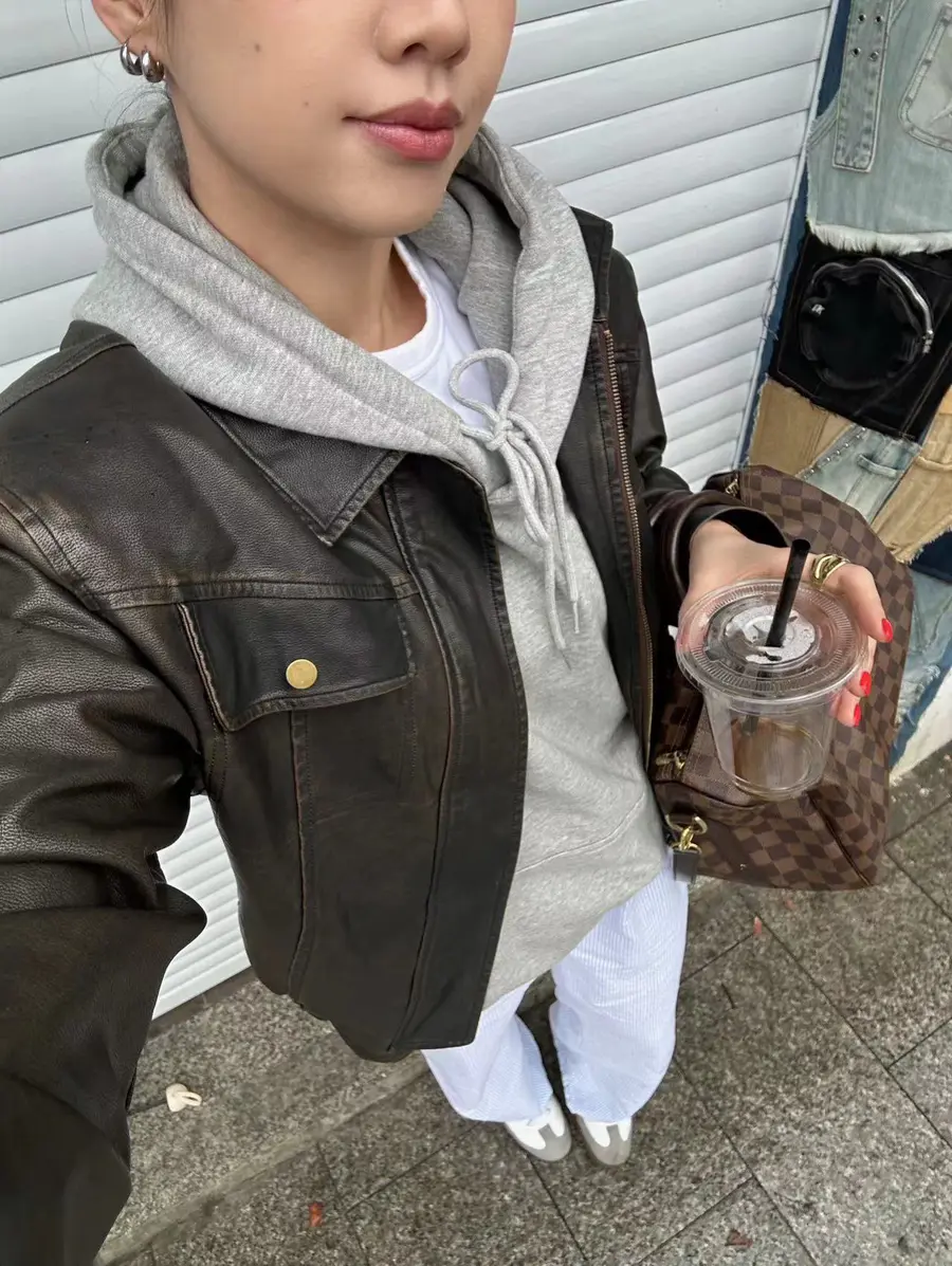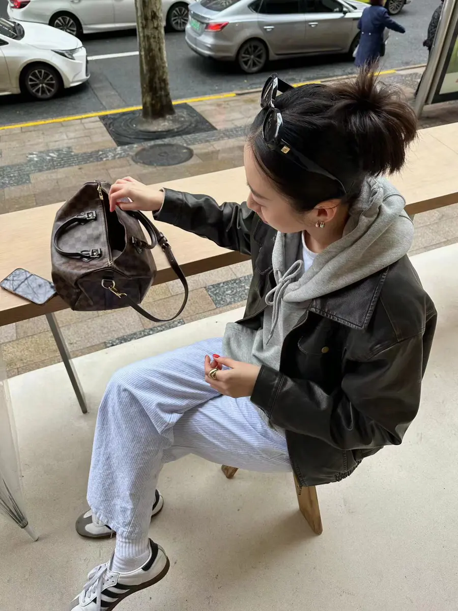 新品上身 | 皮革夹克混搭运动套装也很有feel~🙌