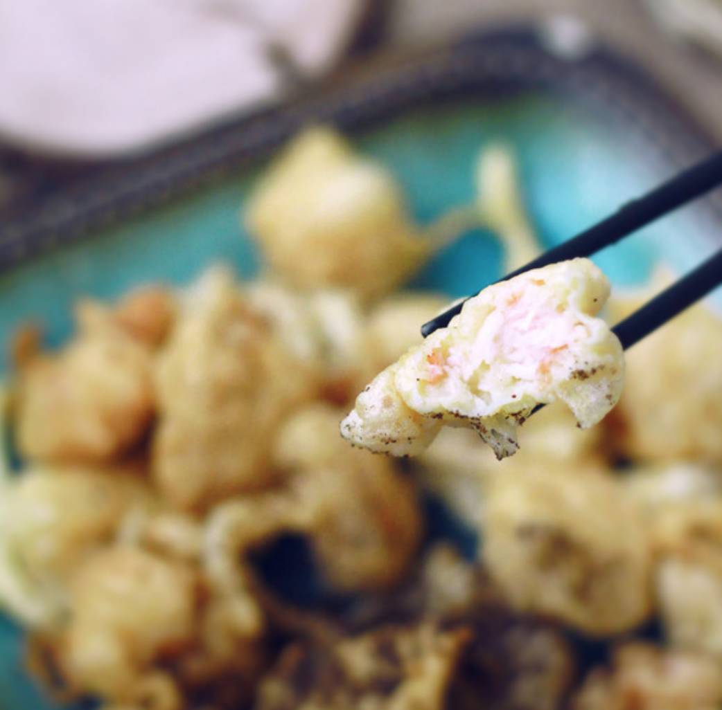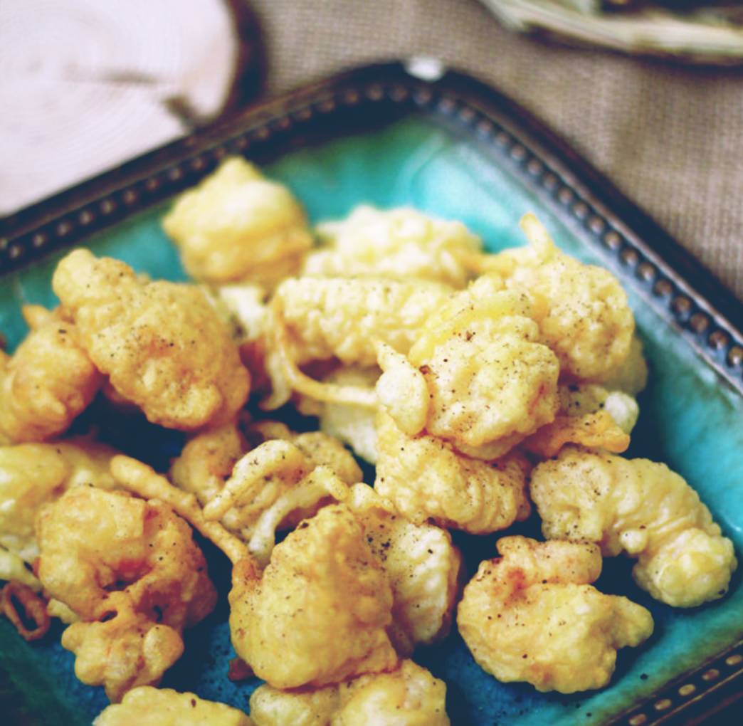 葱、姜、盐、白胡椒粉、料酒、鸡蛋、色拉油、豆油、椒盐;