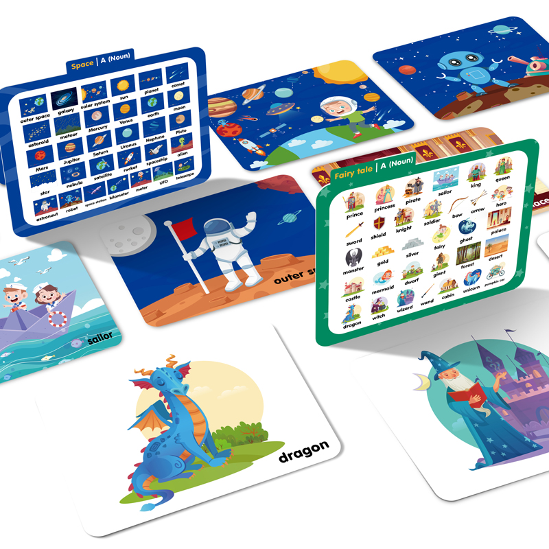 除了各种有趣的单词学习形式,词卡本身的漂亮插画也能吸引孩子的目光,让他饶有兴趣地继续学习下去。