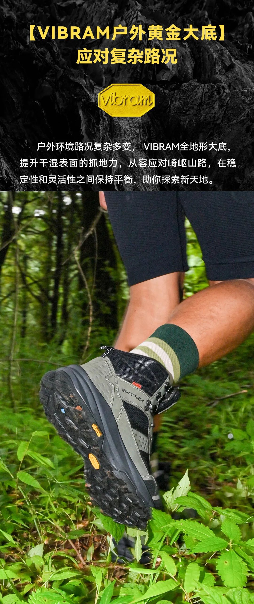 这款徒步鞋采用了VIBRAM专业徒步橡胶配方