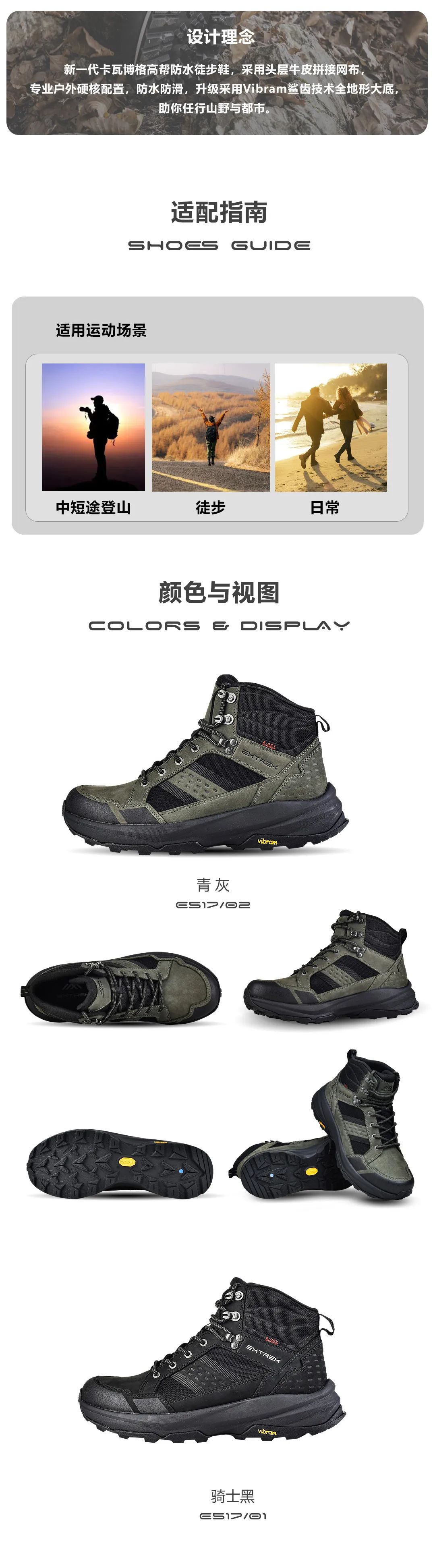 头层牛巴戈皮+VIBRAM大底 高帮登山鞋!适应各种复杂地形!