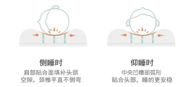 仰卧时,中间凹槽弧形的部位,可以流畅地贴合头部曲线,睡得更舒服;