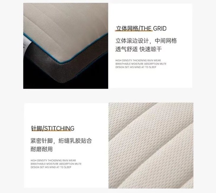 上面的方枕部分,选用了自然乳胶薄片+羽丝绒填充——