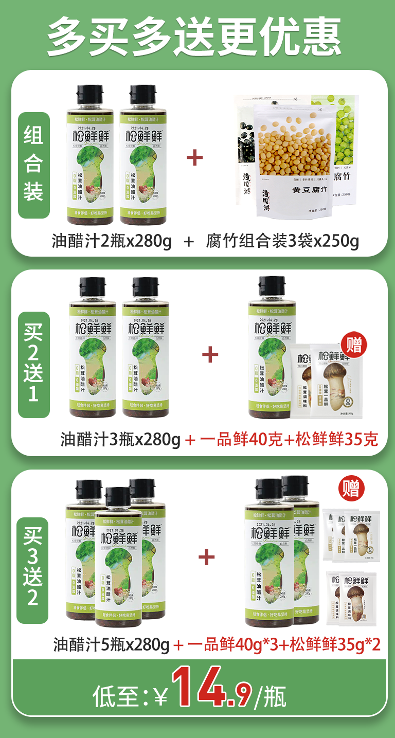 买3送2,再送40g一品鲜*3+35g松鲜鲜*2,单瓶低至14.9元!