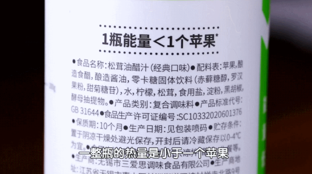 暖暖严选油醋汁显著标明:0脂肪,1瓶<1个苹果热量!少摄入的热量≈慢跑1.5小时,非常适合健身和爱美人士!